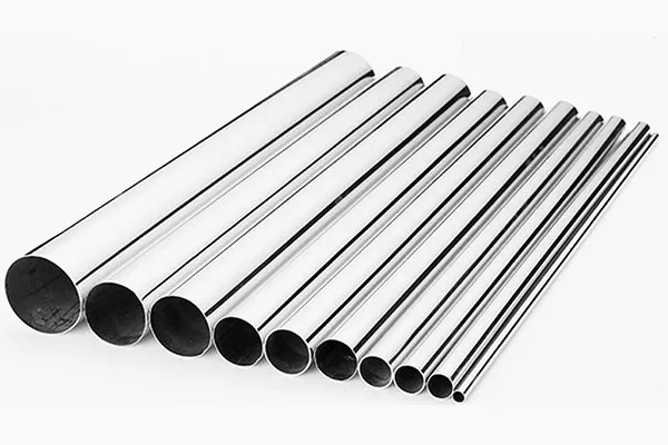 Нержавеющая круглая труба с зеркальной поверхностью, обработанная механической полировкой для достижения высокой степени блеска.